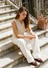 Größenberatung Isabelle ist 1 Meter 73 groß und trägt Größe 36. Die Passform ist Regular fit.