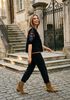 Größenberatung Isabelle ist 1 Meter 73 groß und trägt Größe s. Die Passform ist Locker.