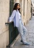 Größenberatung Zohra ist 1 meter 70 groß und trägt Größe 36. Die Passform ist Wide.