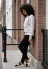 Größenberatung Charis ist 1 Meter 73 groß und trägt Größe s. Die Passform ist Regular fit.