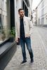 Größenberatung Damian ist 1 Meter 87 groß und trägt Größe m. Die Passform ist Regular fit.