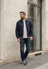 Größenberatung Damian ist 1 Meter 87 groß und trägt Größe L. Die Passform ist Regular fit.