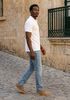 Größenberatung Ibrahim ist 1 Meter 88 groß und trägt Größe 32. Die Passform ist Slim fit.