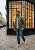 Größenberatung Damian ist 1 Meter 87 groß und trägt Größe 32/34. Die Passform ist Slim fit.