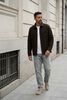 Größenberatung Damian ist 1 Meter 87 groß und trägt Größe m. Die Passform ist Regular fit.