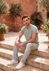 Größenberatung Bram ist 1 Meter 83 groß und trägt Größe L. Die Passform ist Regular fit.