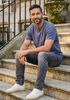 Größenberatung Damian ist 1 Meter 87 groß und trägt Größe L. Die Passform ist Regular fit.