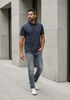 Größenberatung Damian ist 1 Meter 87 groß und trägt Größe L. Die Passform ist Regular fit.