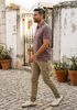 Größenberatung Damian ist 1 Meter 87 groß und trägt Größe L. Die Passform ist Regular fit.