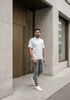 Größenberatung Damian ist 1 Meter 87 groß und trägt Größe L. Die Passform ist Regular fit.