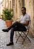 Größenberatung Ibrahim ist 1 Meter 88 groß und trägt Größe L. Die Passform ist Anliegend.