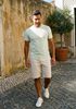 Größenberatung Damian ist 1 Meter 87 groß und trägt Größe L. Die Passform ist Regular fit.
