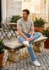 Größenberatung Rogier ist 1 Meter 89 groß und trägt Größe L. Die Passform ist Regular fit.