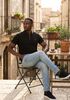 Größenberatung Ibrahim ist 1 Meter 88 groß und trägt Größe L. Die Passform ist Regular fit.