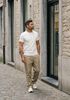 Größenberatung Damian ist 1 Meter 87 groß und trägt Größe L. Die Passform ist Regular fit.