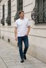 Größenberatung Rogier ist 1 Meter 89 groß und trägt Größe L. Die Passform ist Regular fit.