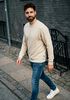 Größenberatung Hessel ist 1 Meter 88 groß und trägt Größe L. Die Passform ist Regular fit.