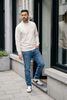 Größenberatung Damian ist 1 Meter 87 groß und trägt Größe L. Die Passform ist Regular fit.
