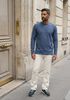 Größenberatung Damian ist 1 Meter 87 groß und trägt Größe L. Die Passform ist Regular fit.