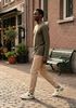 Größenberatung Ibrahim ist 1 Meter 88 groß und trägt Größe L. Die Passform ist Locker.