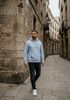 Größenberatung Damian ist 1 Meter 87 groß und trägt Größe L. Die Passform ist Locker.
