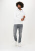 Größenberatung Robin ist 1 Meter 84 groß und trägt Größe L. Die Passform ist Regular fit.