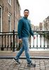 Größenberatung Damian ist 1 Meter 87 groß und trägt Größe L. Die Passform ist Regular fit.