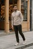 Größenberatung Damian ist 1 Meter 87 groß und trägt Größe L. Die Passform ist Slim fit.