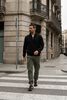 Größenberatung Damian ist 1 Meter 87 groß und trägt Größe l. Die Passform ist Regular fit.