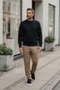 Größenberatung Damian ist 1 Meter 87 groß und trägt Größe L. Die Passform ist Regular fit.