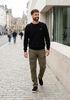 Größenberatung Hessel ist 1 Meter 88 groß und trägt Größe L. Die Passform ist Anliegend.
